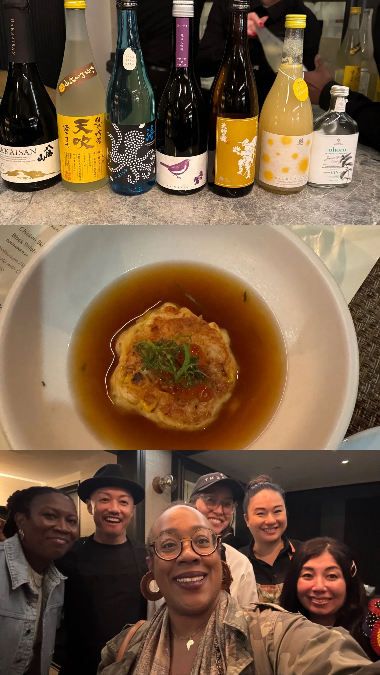 Picture this: You've barely stepped through the door when—BAM!—your evening kicks off with a match made in beverage heaven: Hakkasian AWA Sparkling Sake from Niigata dancing alongside Ohoro Gin from Hakkaido! This dreamy sake-gin power couple delivered flavors so light and airy, I swear I floated an inch off the floor! Major props to Chizuko Niikawa Helton of Sake Discoveries, our sake fairy godmother for the evening, who clearly knows how to start a party right!